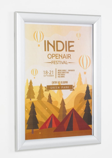 DESCRIZIONE: Cornice con profili apribili a scatto, per poster formato 100x140 cm.