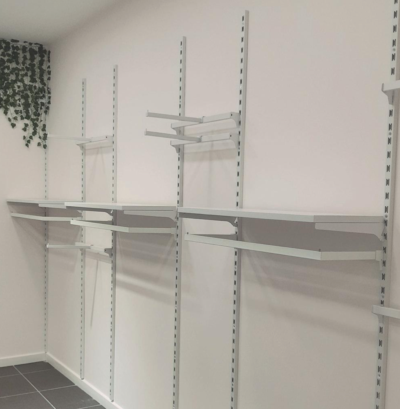 Ai montanti Joker è applicabile una vasta gamma di accessori: reggimensola, staffe a C, barre appenderia, broches inclinate o diritte...