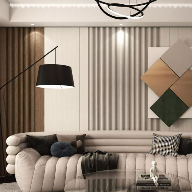 Le fasce a parete sono di dimensione 15x260h cm, con un sistema di incastro maschio/femmina.